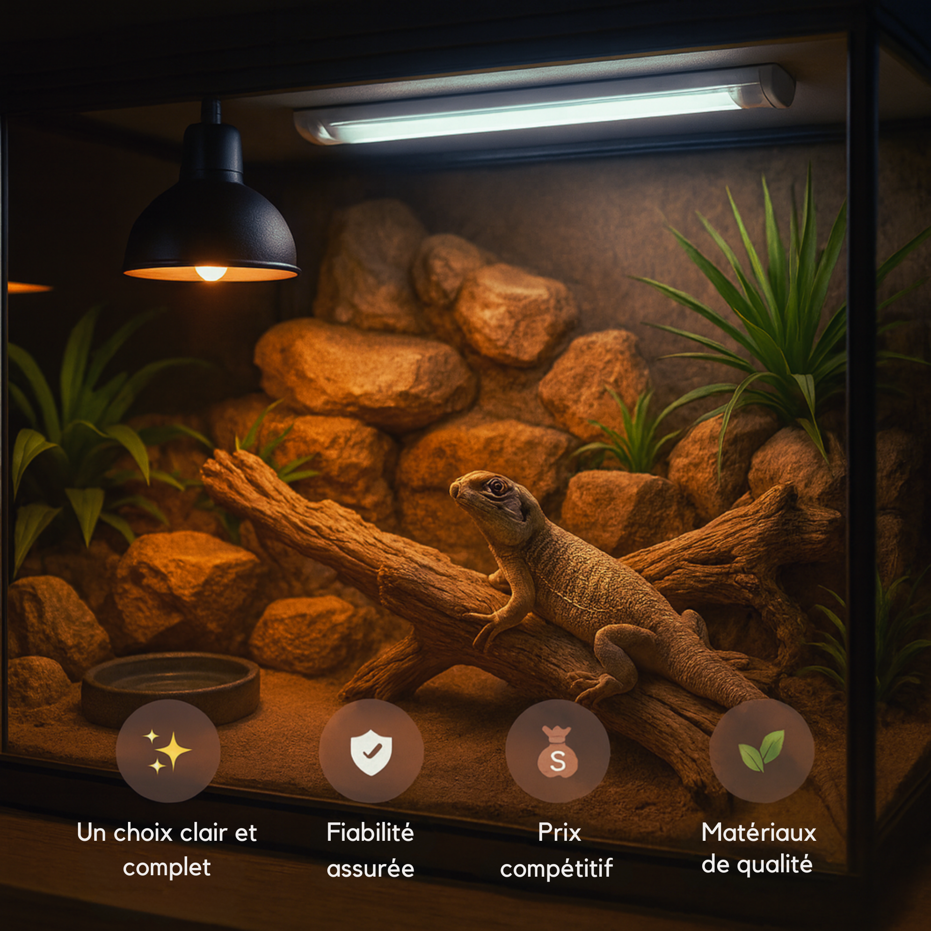✨ Un choix clair et complet : Chaque terrarium et accessoire est pensé pour simplifier l’installation et offrir un habitat fonctionnel.