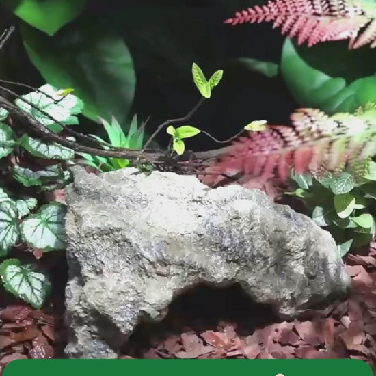 Idéale pour les environnements humides, cette grotte s’intègre avec élégance dans les terrariums tropicaux. Sa résine résistante à l’humidité et son design naturel permettent de créer un refuge rassurant au cœur d’un décor luxuriant.