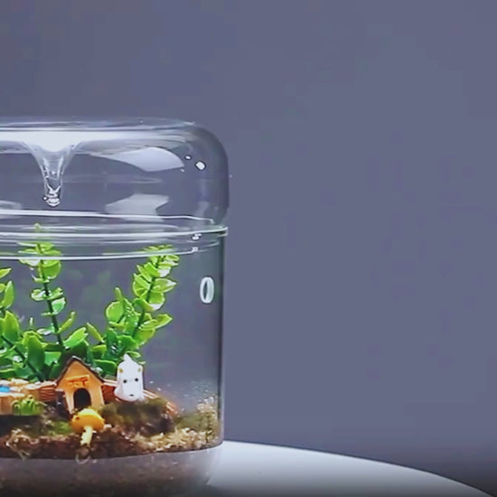Terrarium en verre intelligent, compact et élégant, avec système de condensation autonome pour un micro-paysage naturel et toujours humide.